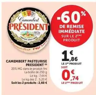 Camembert Pasteurisé Président : offres et promos Hyper U à découvrir