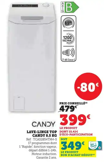Actuellement en offre chez Hyper U : Candy lave-linge top candy 8.5 kg ✅ Valable du 20-01 au 8-02.