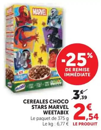 Actuellement en offre chez Hyper U : Cereales choco stars marvel weetabix ✅ Valable du 17-02 au 1-03.