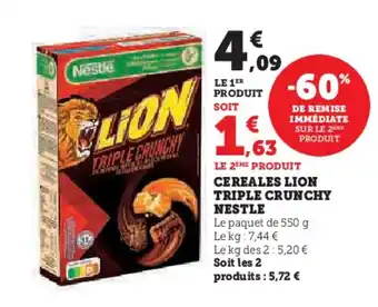 Actuellement en offre chez Hyper U : Cereales lion triple crunchy nestle ✅ Valable du 10-02 au 22-02.