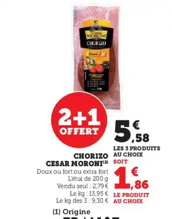 Actuellement en offre chez Hyper U : CESAR MORONI Chorizo ✅ Valable du 6-01 au 18-01.