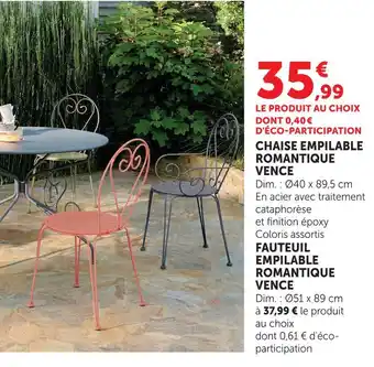 En plus de l'offre Chaise pliante romantique vence, Hyper U propose une large gamme de produits. Consultez le Catalogue Hyper U hebdomadaire pour découvrir les meilleures offres et promotions. En plus de Chaise pliante romantique vence, il y a aussi : Chaise empilable romantique vence, Table ronde romantique vence & Chaise pliante.
