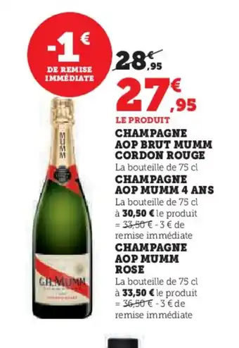 Champagne aop mumm rose cordon rouge offres et promotions en ligne chez Hyper U