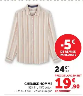 En plus de l'offre Chemise homme, Hyper U propose une large gamme de produits. Consultez le Catalogue Hyper U hebdomadaire pour découvrir les meilleures offres et promotions. En plus de Chemise homme, il y a aussi : Chemise homme, U collection chemise homme & Tex chemise en lin homme.