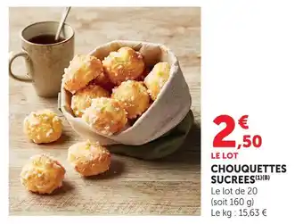 En plus de l'offre Chouquettes sucrées, Hyper U propose une large gamme de produits. Consultez le Catalogue Hyper U hebdomadaire pour découvrir les meilleures offres et promotions. En plus de Chouquettes sucrées, il y a aussi : Chouquettes sucrées, CHOUQUETTES SUCRÉES & 20 CHOUQUETTES.