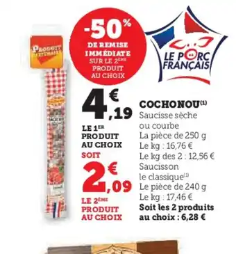 Actuellement, COCHONOU est en promotion chez Hyper U. Toutes les informations utiles comme le prix, les conditions et la durée de validité sont affichées sur cette page. Consultez également les promotions similaires pour COCHONOU, afin de faire le meilleur choix. La promo COCHONOU est valable du 13-01-2026 au 25-01-2026. Si elle est expirée, regardez les autres offres équivalentes. Vous pouvez aussi suivre cette catégorie de produit pour être alerté lorsqu’une nouvelle promotion COCHONOU apparaît chez Hyper U.Questions fréquemment posées au sujet de COCHONOU