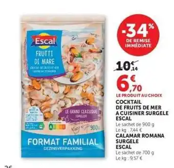 Actuellement en offre chez Hyper U : COCKTAIL DE FRUITS DE MER A CUISINER SURGELE ESCAL ✅ Valable du 21-04 au 3-05.