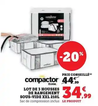 Compactor - lot de 3 housses de rangement sous-vide xxl 210 l offres et promotions en ligne chez Hyper U