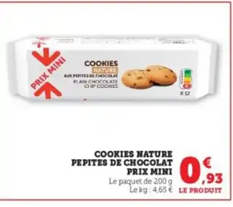 Actuellement en offre chez Hyper U : Cookies nature pepites de chocolat prix mini ✅ Valable du 20-01 au 1-02.