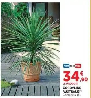 Le prix de l'offre CORDYLINE AUSTRALIS se trouve également en haut de la page, ainsi que la date à laquelle l'offre est disponible. Vous pouvez également vérifier les prix dans le Catalogue Hyper U actuel ou sur le site Internet de Hyper U. Les offres vous permettent d'acheter les produits Hyper U au prix le plus bas.