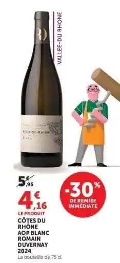 Offre CÔTES DU RHÔNE AOP BLANC ROMAIN DUVERNAY 2024 chez Hyper U