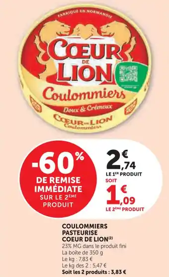 Offre Coulommiers pasteurise coeur de lion chez Hyper U