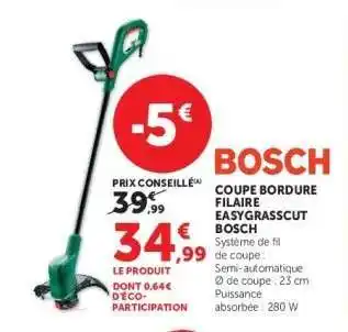 En plus de l'offre COUPE BORDURE FILAIRE EASYGRASSCUT BOSCH, Hyper U propose une large gamme de produits. Consultez le Catalogue Hyper U hebdomadaire pour découvrir les meilleures offres et promotions. En plus de COUPE BORDURE FILAIRE EASYGRASSCUT BOSCH, il y a aussi : BOSCH COUPE BORDURE FILAIRE EASYGRASSCUT, BOSCH COUPE BORDURE FILAIRE EASYGRASSCUT & Bosch coupe bordure filaire easygrasscut.