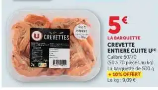Offre CREVETTE ENTIERE CUITE U chez Hyper U