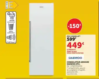 Offre Daewoo congélateur armoire 279 l chez Hyper U