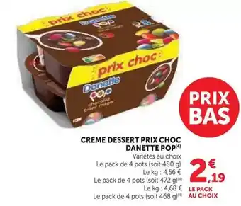 Actuellement en offre chez Hyper U : Danette - creme dessert prix choc pop ✅ Valable du 24-02 au 8-03.