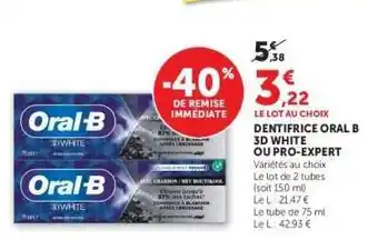 DENTIFRICE ORAL B 3D WHITE OU PRO-EXPERT : offres et promos Hyper U à découvrir
