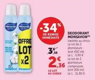 Déodorant MONSAVON offres et promotions en ligne chez Hyper U