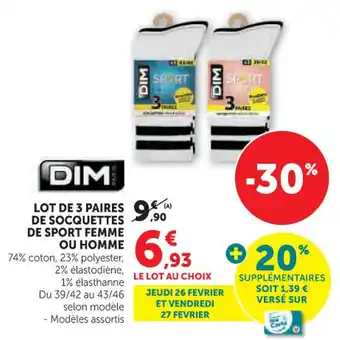 Actuellement en offre chez Hyper U : Dim lot de 3 paires de socquettes de sport femme ou homme ✅ Valable du 24-02 au 8-03.