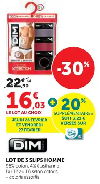 Actuellement en offre chez Hyper U : Dim lot de 3 slips homme ✅ Valable du 24-02 au 8-03.