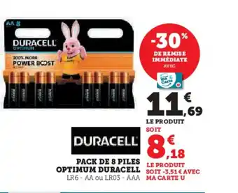 Actuellement en offre chez Hyper U : DURACELL Pack de 8 piles optimum ✅ Valable du 6-01 au 18-01.
