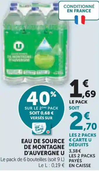Actuellement en offre chez Hyper U : Eau de source de montagne d'auvergne u ✅ Valable du 17-02 au 1-03.