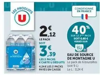Actuellement en offre chez Hyper U : Eau de Source de Montagne U ✅ Valable du 14-04 au 26-04.