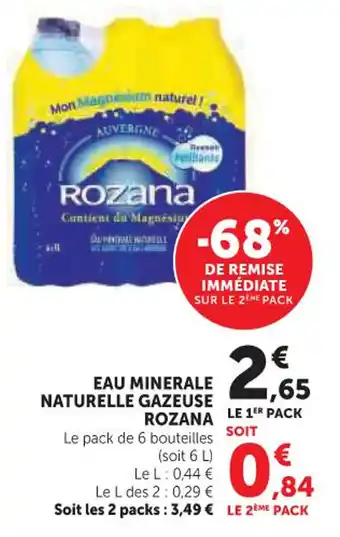 Actuellement en offre chez Hyper U : Eau minerale naturelle gazeuse rozana ✅ Valable du 24-02 au 8-03.