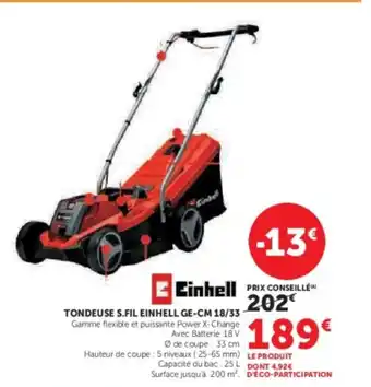 EINHELL Tondeuse s.fil einhell ge-cm 18/33 : offres et promos Hyper U à découvrir
