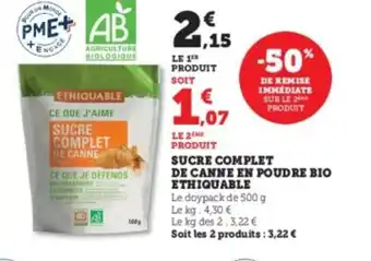 Actuellement en offre chez Hyper U : ETHIQUABLE Sucre complet de canne en poudre bio ✅ Valable du 20-01 au 1-02.