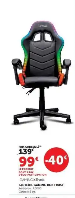 Actuellement en offre chez Hyper U : FAUTEUIL GAMING RGB TRUST ✅ Valable du 28-04 au 10-05.