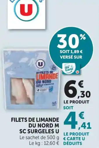 Actuellement en offre chez Hyper U : Filets de limande du nord m sc surgeles u ✅ Valable du 17-02 au 1-03.