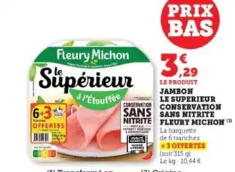 FLEURY MICHON Jambon le superieur conservation sans nitrite offres et promotions en ligne chez Hyper U
