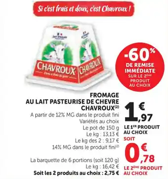 Fromage au lait pasteurise de chevre chavroux offres et promotions en ligne chez Hyper U