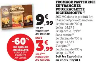 Offre Fromage pasteurise en tranches pour raclette richesmonts chez Hyper U