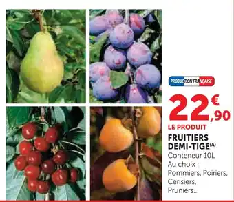 Actuellement, Fruitiers demi-tige est en promotion chez Hyper U. Toutes les informations utiles comme le prix, les conditions et la durée de validité sont affichées sur cette page. Consultez également les promotions similaires pour Fruitiers demi-tige, afin de faire le meilleur choix. La promo Fruitiers demi-tige est valable du 24-02-2026 au 22-03-2026. Si elle est expirée, regardez les autres offres équivalentes. Vous pouvez aussi suivre cette catégorie de produit pour être alerté lorsqu’une nouvelle promotion Fruitiers demi-tige apparaît chez Hyper U.Questions fréquemment posées au sujet de Fruitiers demi-tige