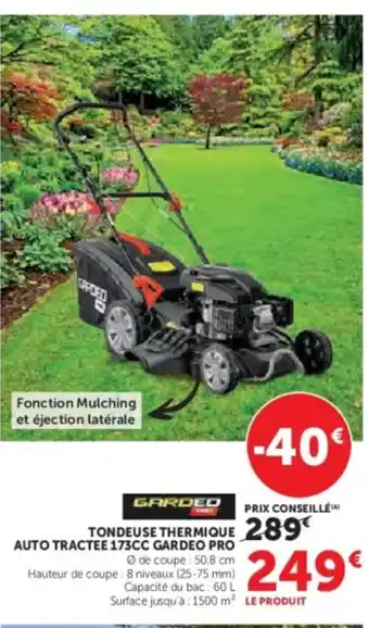 GARDEO PRO Tondeuse thermique 289 auto tractee 173cc : offres et promos Hyper U à découvrir