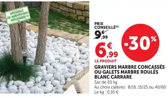 En plus de l'offre Graviers marbre concassés blanc carrare, Hyper U propose une large gamme de produits. Consultez le Catalogue Hyper U hebdomadaire pour découvrir les meilleures offres et promotions. En plus de Graviers marbre concassés blanc carrare, il y a aussi : Graviers marbre concassés blanc carrare, Graviers marbre concassés ou galets marbre roulés blanc carrare & Graviers marbre concassés ou galets marbre roulés blanc carrare.