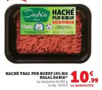 Offre Haché vrac pur boeuf 15% mg halal dabia chez Hyper U