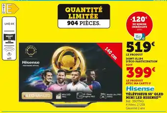 Actuellement en offre chez Hyper U : Hisense téléviseur 55 qled mini led ✅ Valable du 30-12 au 11-01.