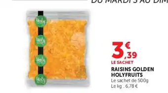 HOLYFRUITS Raisins golden offres et promotions en ligne chez Hyper U