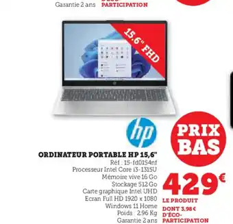 HP Ordinateur portable 15,6" : offres et promos Hyper U à découvrir