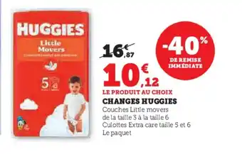 En plus de l'offre HUGGIES Changes, Hyper U propose une large gamme de produits. Consultez le Catalogue Hyper U hebdomadaire pour découvrir les meilleures offres et promotions. En plus de HUGGIES Changes, il y a aussi : HUGGIES Changes, Changes huggies & 2 boiss de changes.