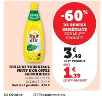 Huile de tournesol fruit d'or offre saisonniere : offres et promos Hyper U à découvrir