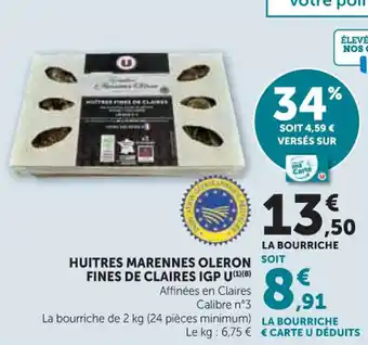 Huitres marennes oleron fines de claires igp u : offres et promos Hyper U à découvrir