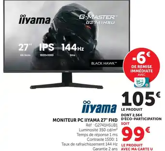 Actuellement en offre chez Hyper U : Iiyama moniteur pc 27 fhd ✅ Valable du 28-04 au 10-05.