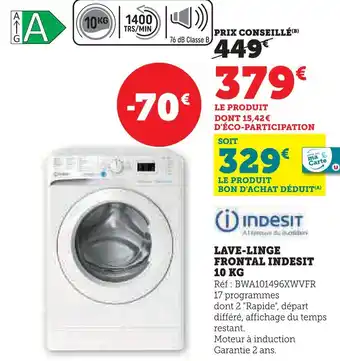 Indesit lave-linge frontal 10 kg offres et promotions en ligne chez Hyper U