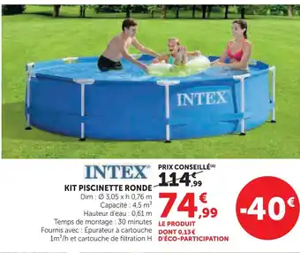 Actuellement en offre chez Hyper U : Intex kit piscinette ronde ✅ Valable du 24-03 au 19-04.