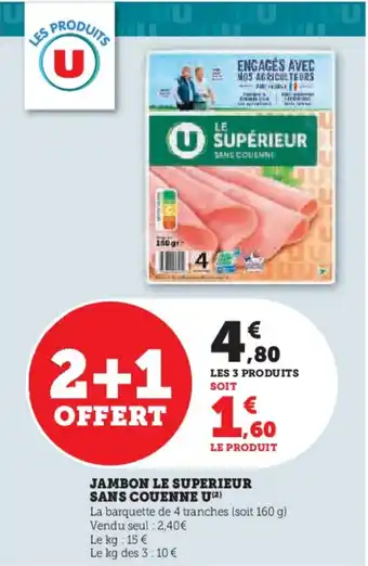 Actuellement en offre chez Hyper U : Jambon le superieur sans couenne u ✅ Valable du 10-02 au 22-02.