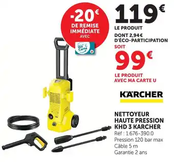 Actuellement en offre chez Hyper U : Karcher nettoyeur haute pression khd 3 ✅ Valable du 28-04 au 24-05.
